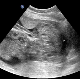 MRI and enzyme analysis help identify obstruction and define MMIHS. [77] In the ultrasound assessment, the dilatation of the fetal bladder obscures the dilatation of the colon, but the diagnosis is suggested by a normal sodium and chloride from the bladder aspirate, normal amniotic fluid volume, and findings of colon dilatation. [78] Clinical presentation of MMIHS may include a rapidly progressive bilateral hydronephrosis and bladder dilation but normal amniotic fluid volume, [79] and in some cases, polyhydramnios does not appear until the third trimester. [80]