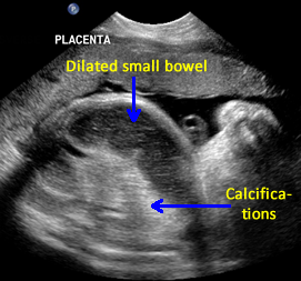 In another report, the finding on prenatal ultrasound of ascites, bowel calcifications, and dilated or hyperechogenic bowel loops allowed accurate diagnosis in 3 of 7 cases (43%). [40]