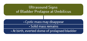 The cystic mass at the base of the umbilical cord may disappear as the pregnancy progresses, while the possibility remains of the bladder prolapsing through the urachal opening at the base of the umbilicus. [60] When the cyst disappears, a solid mass remains on ultrasound, which may represent the everted dome of the bladder prolapsing through a patent urachus. [61]
