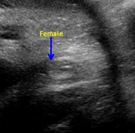 Above. Ovarian cyst. Case 1. 35 weeks gestation. Fetal gender is ascertained and confirmed to be female.