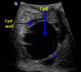 the cyst and confirming the anechoic nature of the cyst.